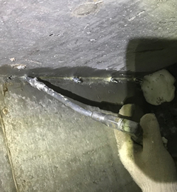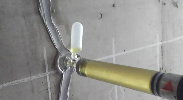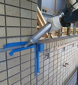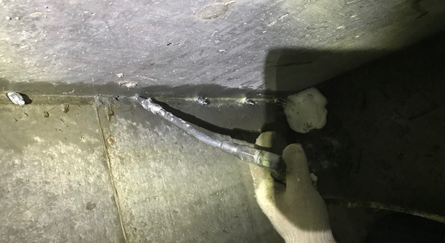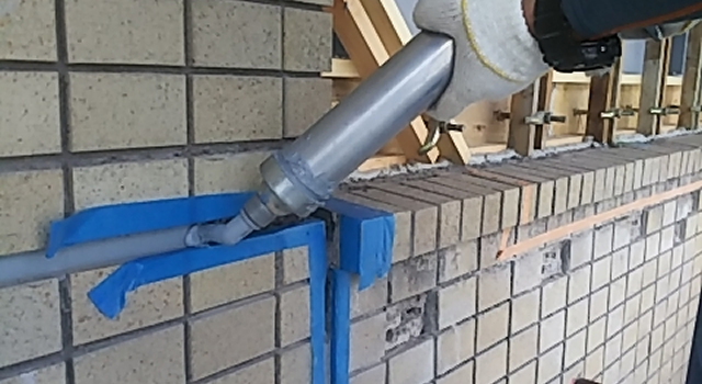 コンクリートのひび割れや、タイル・モルタル浮き部分にエポキシ樹脂を注入する工事です。